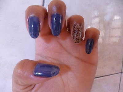 Olá meninas hoje quero mostrar para vcs minhas unhas com Magic de películas para unhas, escolhi para hoje essas lindas estampas de oncinha e esse lindo esmalte da Biotropic azul cremoso - jeans.